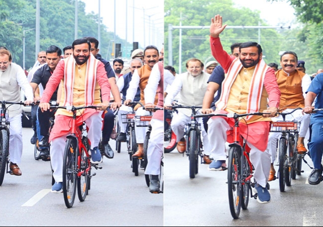 चंडीगढ़, 26 अगस्त ( धमीजा ) : आज हरियाणा विधानसभा का नजारा आम दिनों से बिल्कुल अलग था। मुख्यमंत्री नायब सिंह सैनी से लेकर कई मंत्री और विधायक अपनी कारों की जगह साइकिल पर विधानसभा पहुंचे। वजह थी नशे के खिलाफ संदेश। यह पहल विधानसभा स्पीकर हरविन्द्र कल्याण के आह्वान पर हुई, जिन्होंने मानसून सत्र की शुरुआत पर सभी सदस्यों से साइकिल से आने की अपील की थी।